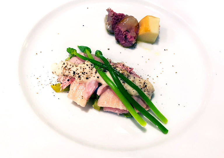 令和の時代が玉のごとく光輝き、青々と茂る葉のごとくあるようにとの願いを銘に込め、吉祥八角に松喰鶴をあしらいました。