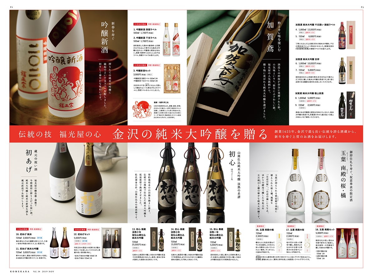 一年の終わりに感謝の気持ちを込めて贈り物を届ける「お歳暮」。この豊かな日本の贈答文化を見直してみませんか。金沢の酒蔵から、冬の贈り物に相応しい逸品を選びました。