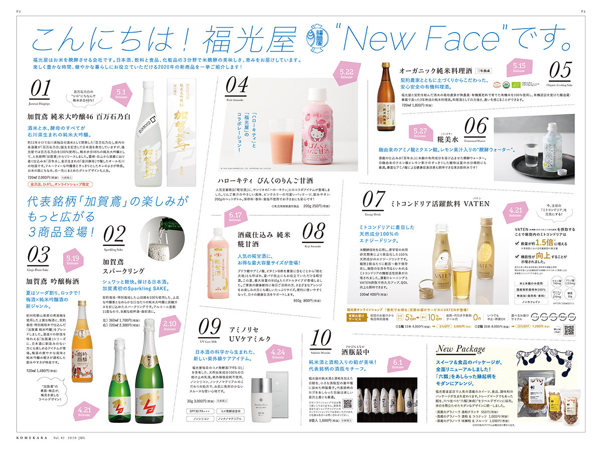 福光屋はお米を醗酵させる会社です。日本酒、飲料と食品、化粧品の3分野で米醗酵の美味しさ、恵みをお届けしています。楽しく豊かな時間、健やかな暮らしにお役立ていただける2020年の新商品を一挙ご紹介します!