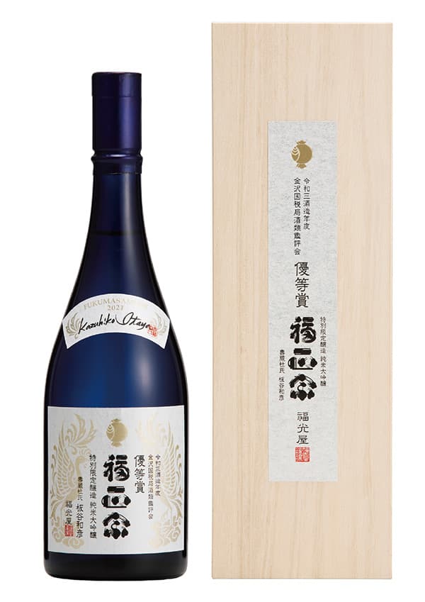 令和三酒造年度 金沢国税局酒類鑑評会の「吟醸の部」と、今期初出品した「金沢酵母吟醸の部」の両部門において、優等賞受賞の栄に浴した杜氏渾身の純米大吟醸酒2種。第一弾として「吟醸の部」の受賞酒である「優等賞 福正宗 純米大吟醸」を600本限定発売いたします。