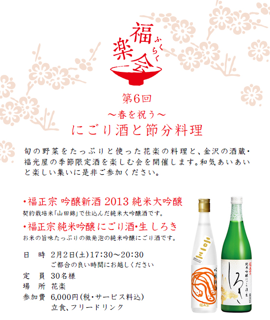 福楽会「第6回 ~春を祝う~ にごり酒と節分料理」
