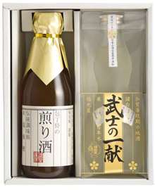 加賀藩政期の食文化再現シリーズ「武士の一献」と「包丁侍の煎り酒」をセットにしました。一献傾けながら酒肴を楽しめる乙なギフト、お土産としておすすめです。